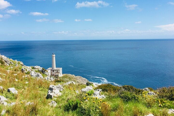 Dopo Otranto raggiungerete Santa Maria di Leuca, percorrendo la meravigliosa costa adriatica, caratterizzata da scogliere a strapiombo sul mare, grotte e calette dal fondale roccioso. Lungo il percorso ammirerete Santa Cesarea Terme, Castro Marina e il Fiordo del Ciolo. Santa Maria di Leuca è davvero il tacco d'Italia, il luogo dove il Mar Ionio incontra il Mar Adriatico. Da questa punta di Puglia ammirerete viste spettacolari sul porto e sul mare, oltre al santuario di Santa Maria de Finibus Terrae.