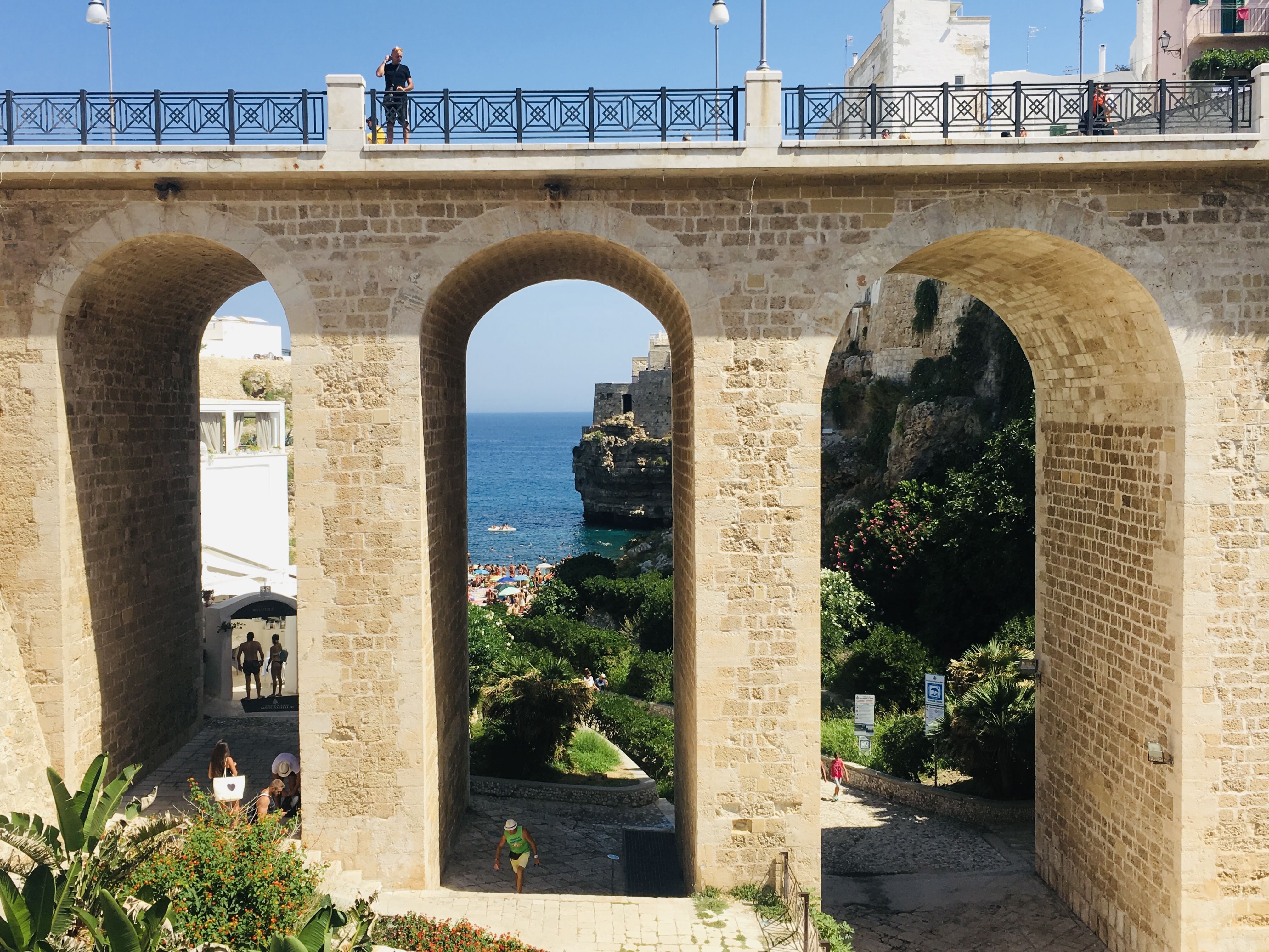 Dopo Alberobello, scendendo verso il Mar Adriatico, raggiungerete la meravigliosa cittadina che ha dato i natali a Domenico Modugno: Polignano a Mare, che sorge sospesa su una scogliera a strapiombo sul mare. Avrete del tempo a vostra disposizione per ammirare il centro storico e i resti della dominazione romana, tra questi ultimi il ponte della via Traiana, tuttora percorribile. Entrando nel centro storico, attraverso un dedalo di viuzze, vicoli e piazzette animate da locali, negozi e ristoranti potrete arrivare su tre terrazze a picco sul mare per ammirare un panorama mozzafiato.